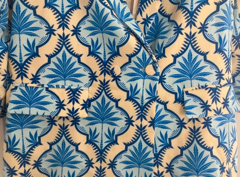 This stunning double breasted, long sleeve collared NFD blazer features a blue Mauritius print, perfect for versatile styling. Look fabulous dressed up by night or dressed down with jeans or dresses by day.