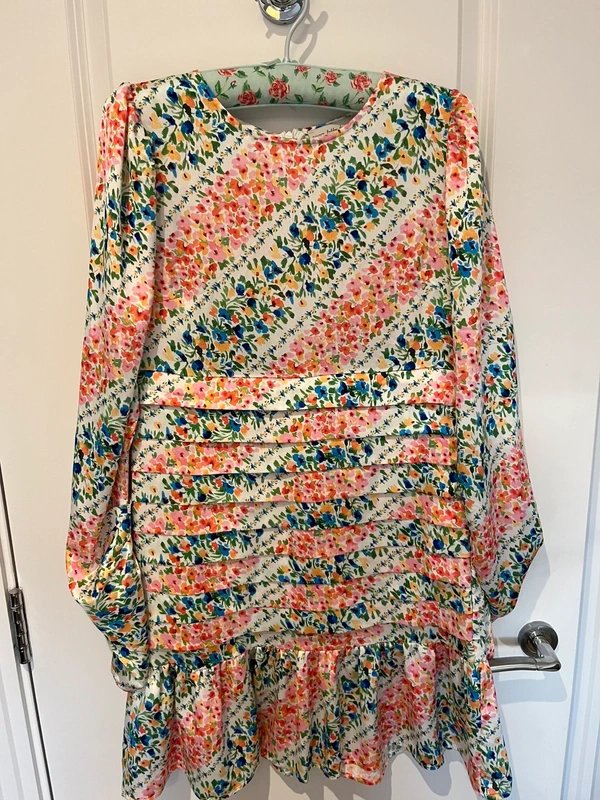 Super flattering floral long-sleeved dress perfect for any occasion. The full-length sleeves and lightweight fabric make it comfortable and stylish.