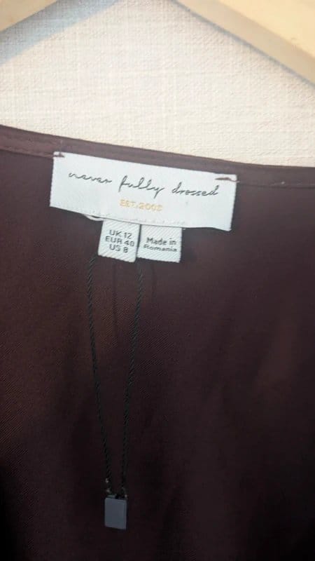 View Vinted's returns policyThis Never Fully Dressed satin wrap midi dress in chocolate brown features a sheer wrap front and satin back. Ideal for evening events or date nights.