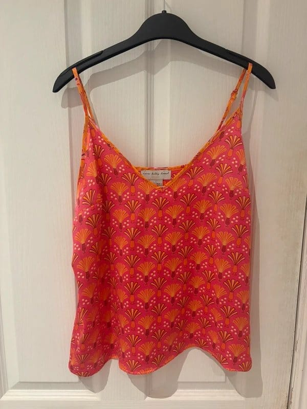 See all outfit ideasBright and vibrant Never Fully Dressed cami in orange with a floral print. Features a scoop neckline and adjustable straps. Perfect for casual summer wear.