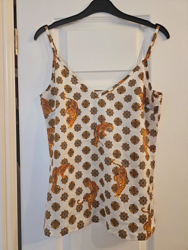 This tiger print cami top from Never Fully Dressed is a stylish and unique piece, perfect for casual outings. Featuring an adjustable shoulder strap design, it offers a flattering fit for size 8-10.