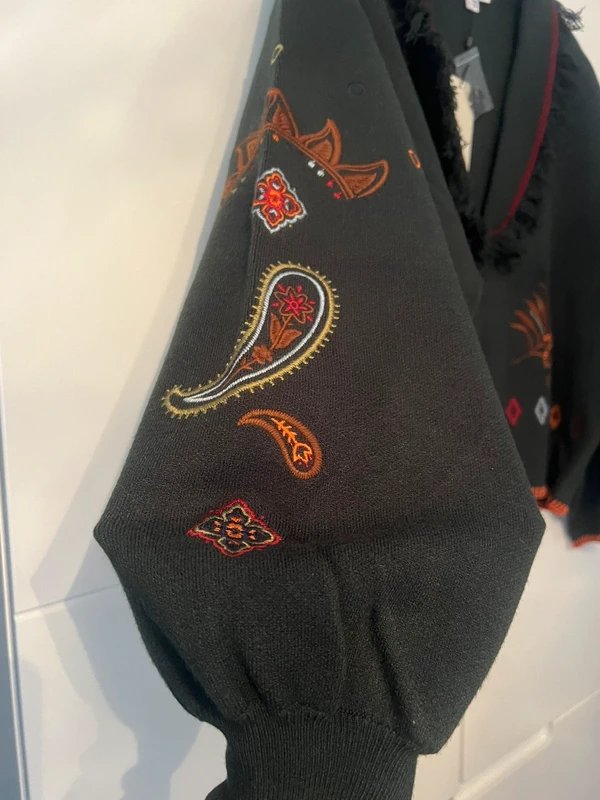 This Never Fully Dressed cardigan features a floral print design with long sleeves. Perfect for adding a bohemian touch to your outfit, it's a versatile piece that can be worn for various occasions.