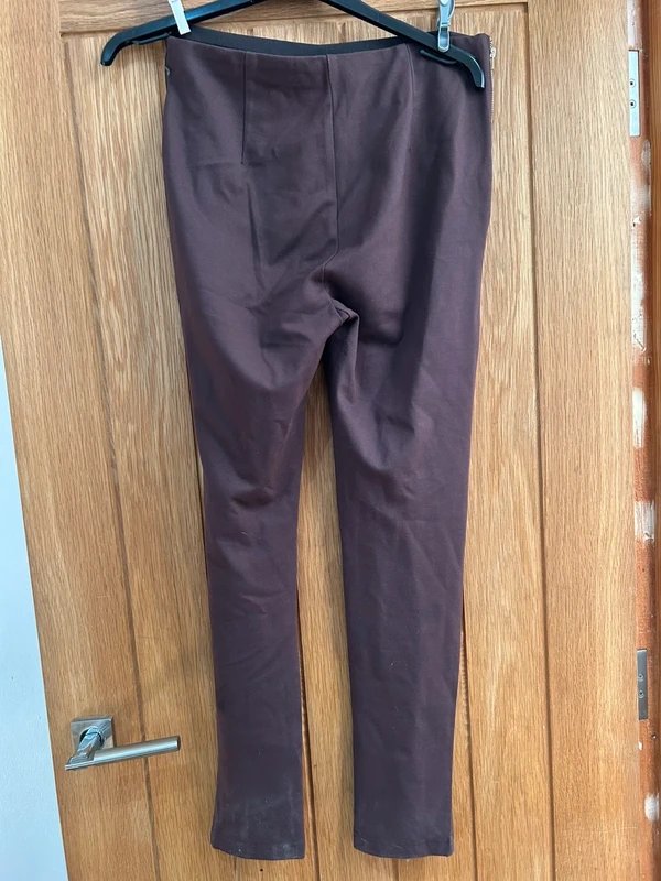 The Never Fully Dressed Chocolate Brown Faux Leather Trousers is available in sizes M.