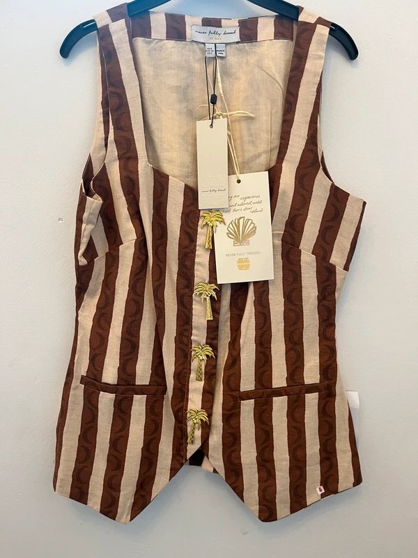 The Never Fully Dressed Chocolate Stripe Waistcoat is available in sizes S.