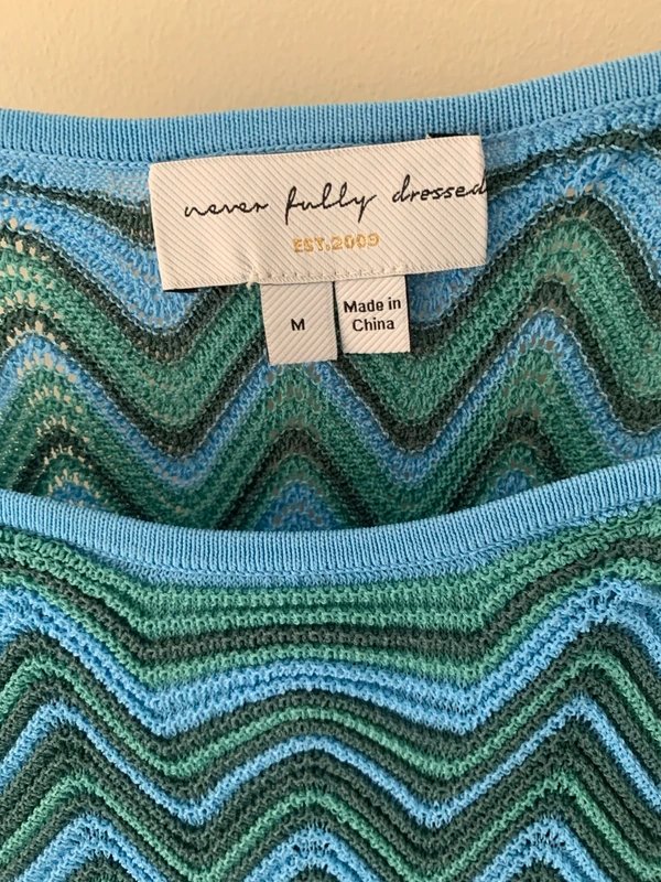 The Never Fully Dressed Crochet Co-ord Set in Blue and Green is available in sizes M.