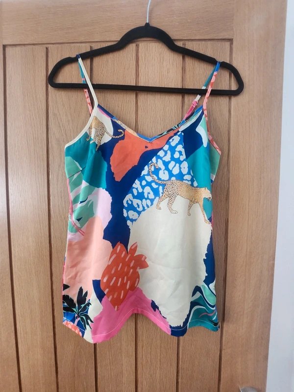 The Never Fully Dressed Multi Print Cami Top is available in sizes S.