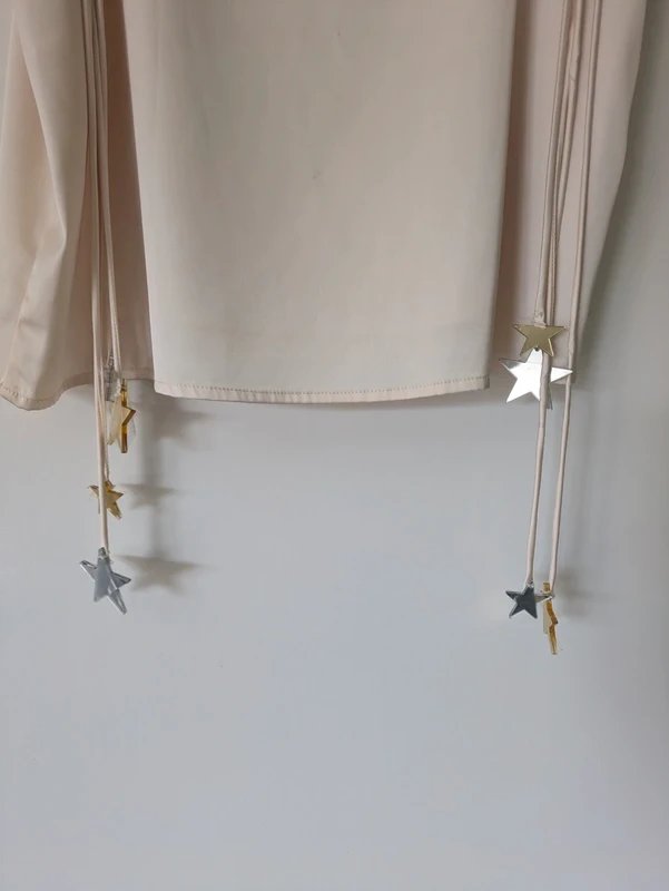 Featuring a square neckline, this Never Fully Dressed top is crafted from silky cream material and adorned with star detailing on the tie straps. Perfect for a relaxed and stylish look.