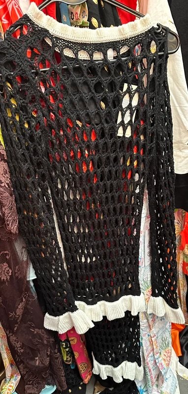 The Never Fully Dressed Crochet Knit Ruffled Dress is available in sizes M.