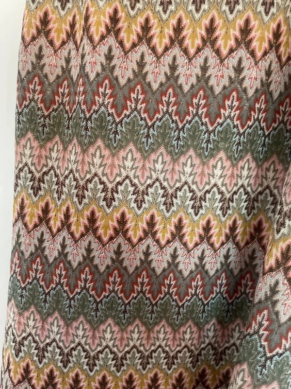 This Missoni-style crochet midi skirt from Never Fully Dressed is perfect for a casual look. Featuring a zig-zag crochet pattern in a vibrant multi-colored palette, it adds a playful touch to any outfit.
