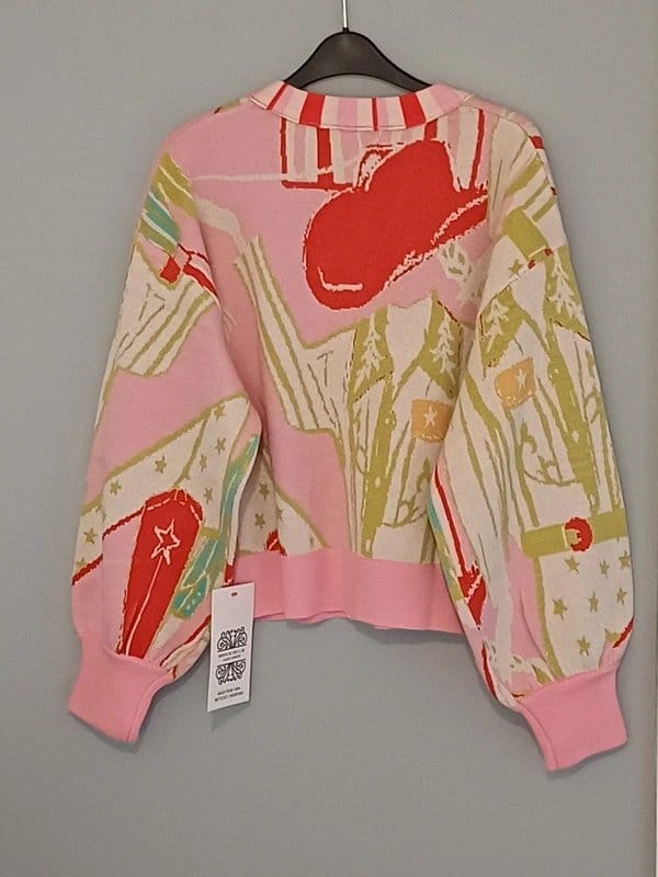 The Never Fully Dressed Multi Abstract Print Knitted Cardigan is available in sizes L.