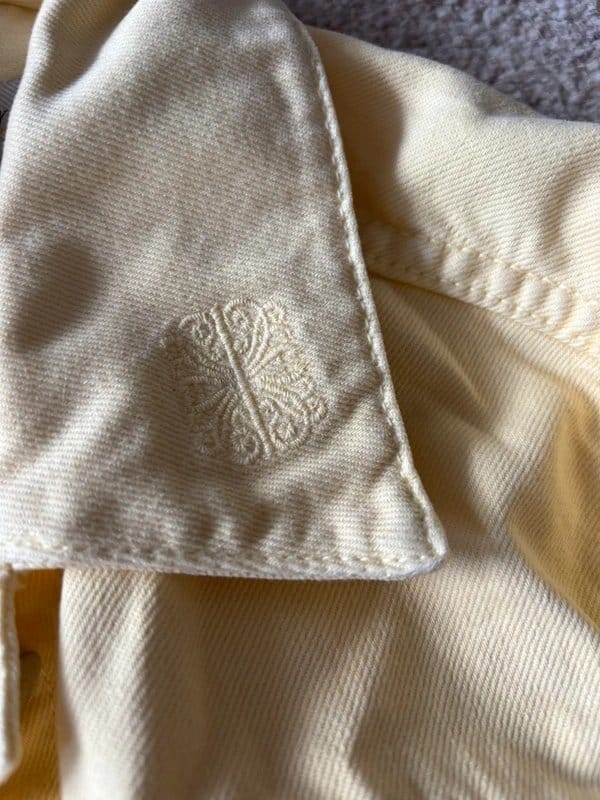 This yellow denim co-ord set includes a short-sleeved shirt and matching jeans. Perfect for a spring/summer outfit. Made from denim fabric, it offers a casual and comfortable fit.