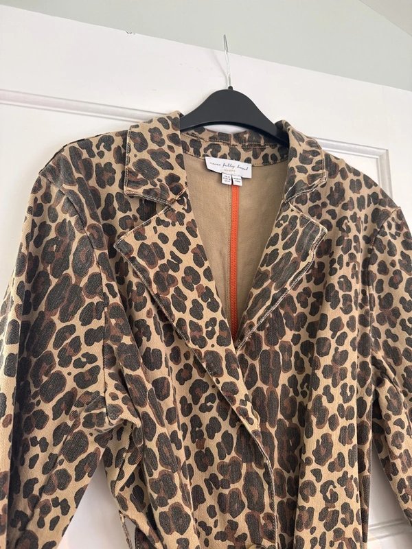 The Never Fully Dressed Leopard Print Trench Coat is made from denim.