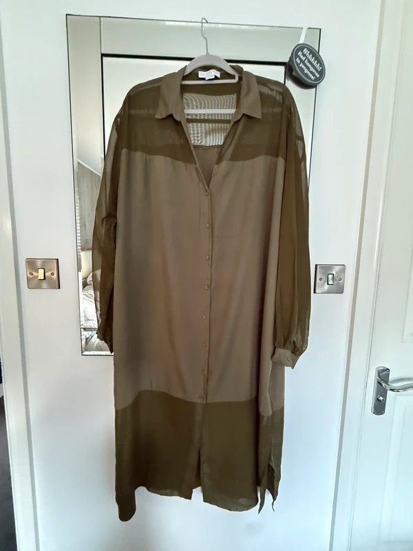 Beautiful Khaki Chiffon Blouse — perfect for casual and semi-formal occasions. This long-sleeve blouse features a sheer chiffon fabric with a solid pattern. The lightweight material and button closure make it comfortable and easy to wear. Ideal for pairing with trousers or skirts for a versatile look.