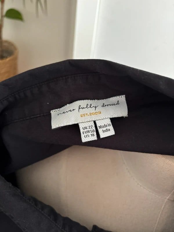 The Never Fully Dressed Black Embroidered Shirt Dress Size 22 is made from cotton, polyester.