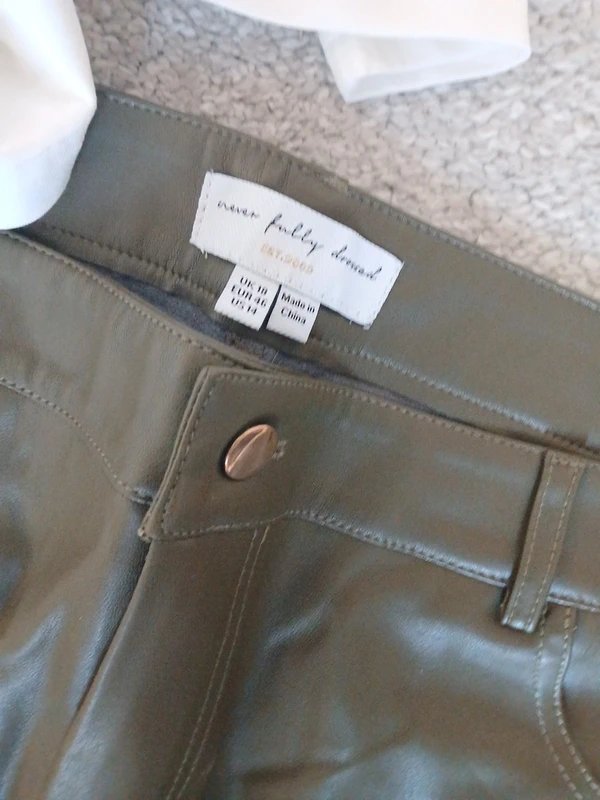 Hardly worn faux leather trousers in a versatile khaki color. Perfect for a casual yet stylish look. Crafted from durable faux leather, these trousers offer a sleek and modern silhouette. Ideal for everyday wear or adding a touch of sophistication to your outfits.
