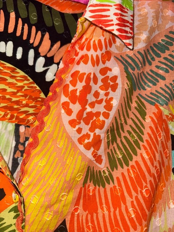 Beautiful Never Fully Dressed Fiji Eliza Shirt features an Orange Scallop Lace Trim with detailing. Ideal for adding a touch of elegance to your wardrobe.