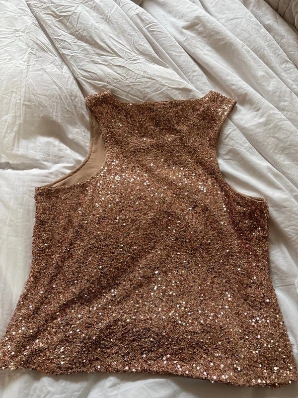 The Never Fully Dressed Gold Sequin Top UK 16 is ideal for evening, party, special occasion.
