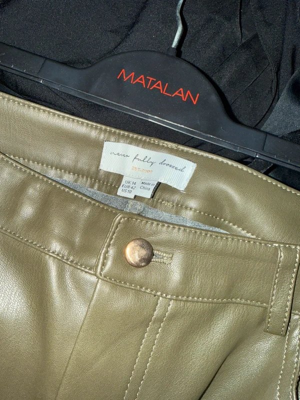 The Never Fully Dressed Green Vegan Leather Trousers is available in sizes M.