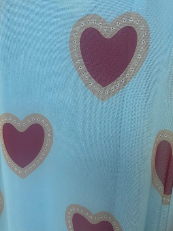 Light Blue Heart Print Chiffon Midi Dress — the must-have occasion dress for wedding guests, evening events, dinner parties. Designed in vibrant light blue with heart prints, this midi dress features a sheer chiffon fabric with a lightweight feel. The dress has a sweetheart neckline and long sleeves, offering a flattering fit with its A-line silhouette. Perfect for special occasions, it includes a full-length jersey slip lining for comfort and coverage.