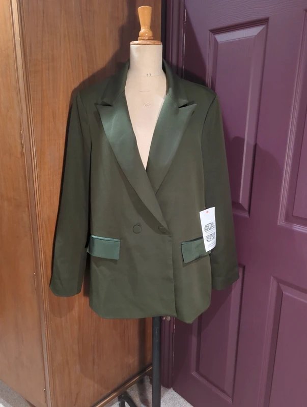 A beautifully structured khaki green, double-breasted blazer in a flattering relaxed fit. Perfect for work, smart casual or layering over dresses.