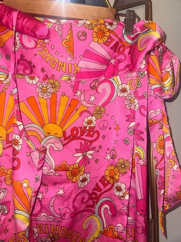 The Never Fully Dressed Iconic Kindness Midi Dress in Pink is available in sizes XXXL, XXL, XL, XS, L, M, S.