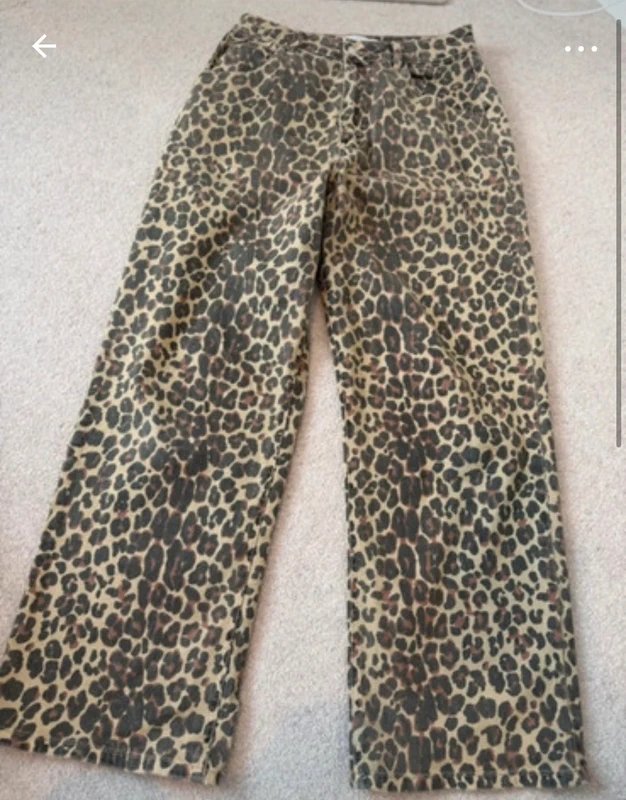 Lovely leopard jeans perfect for a bold statement. Size 14. Made from durable denim material with a high-waisted design.