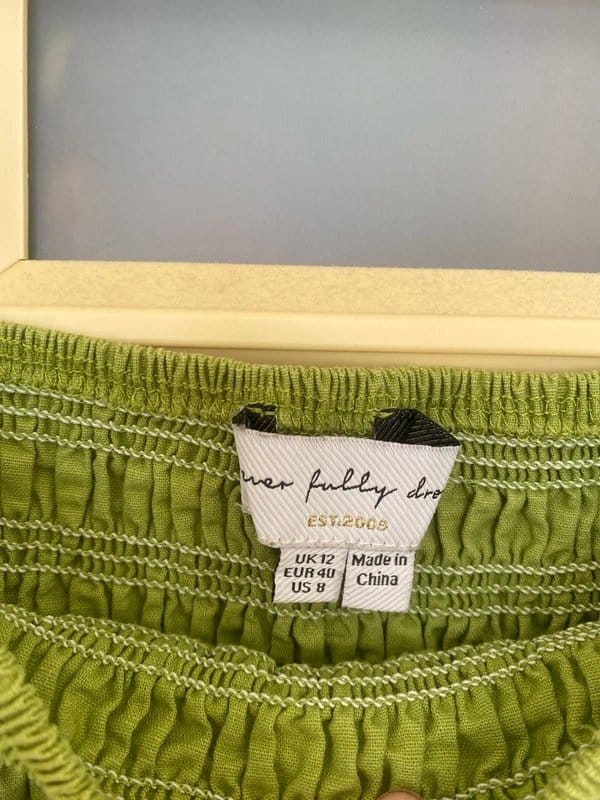 The Never Fully Dressed Lime Green Ruched Midi Dress UK 10 is made from polyester, spandex.
