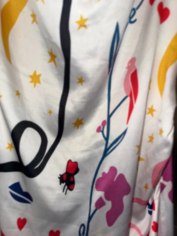 Multi Love Heart Slip Dress with Cowl Neck, Zip up side, Ruched side detail & side slits. This stunning statement dress is perfect for a night out or special occasion. Designed in vibrant multi-colored print, this slip dress features a cowl neckline, ruched side detail, and side slits for a dramatic effect. Crafted from lightweight sheer fabric with subtle shimmer, it catches the light beautifully. Includes a full-length jersey slip lining for comfort and coverage.