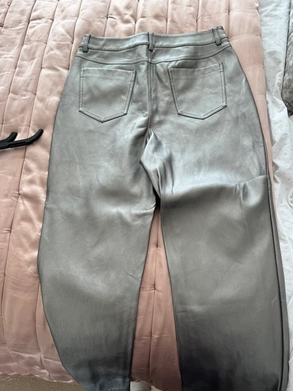 The Never Fully Dressed Silver Leather Trousers is available in sizes M.