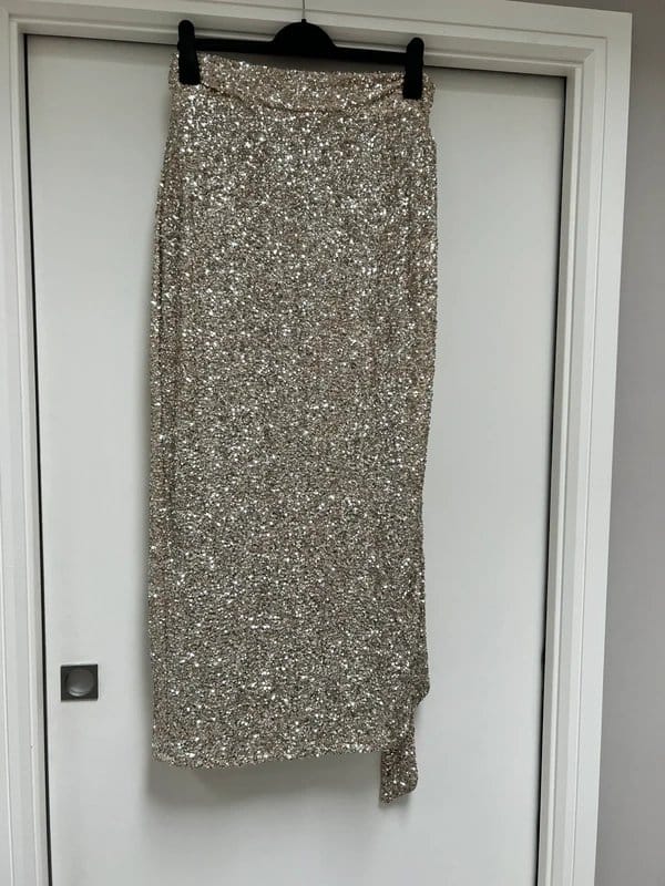 The Never Fully Dressed Silver Sequin Maxi Wrap Skirt Size 16 is ideal for evening, party, special occasion.