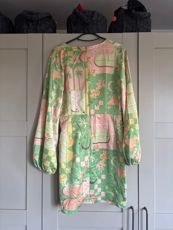 Mint Coral Chiffon Mini Dress — the perfect lightweight piece for casual outings and summer events. Designed in a vibrant mint and coral print, this mini dress features long sleeves and a round neckline. Crafted from lightweight chiffon, it offers a flowing silhouette and a zipper closure for easy wear. Ideal for beach days, picnics, and casual gatherings.