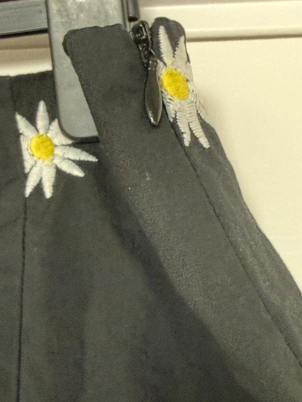 Designed in black, this mini skirt features embroidered daisies and is perfect for holidays paired with a pair of heels.