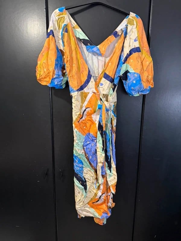 The Never Fully Dressed Multi Colour Wrap Dress Size 16 is available in sizes L.