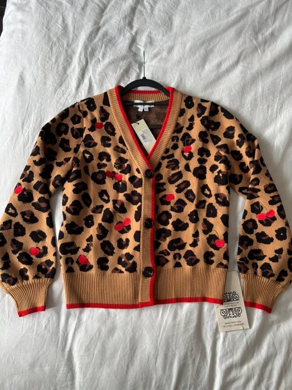 The Never Fully Dressed Brown Leopard Cardigan Small UK 8 is available in sizes S.