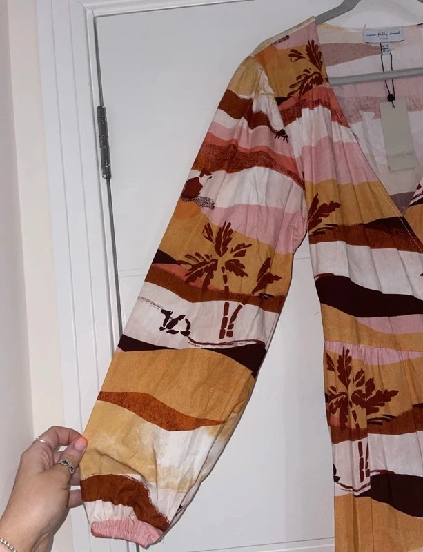 Lovely Never Fully Dressed Orange Camel Print Wrap Maxi Dress. Size 16. Great for Summer. New with tags.