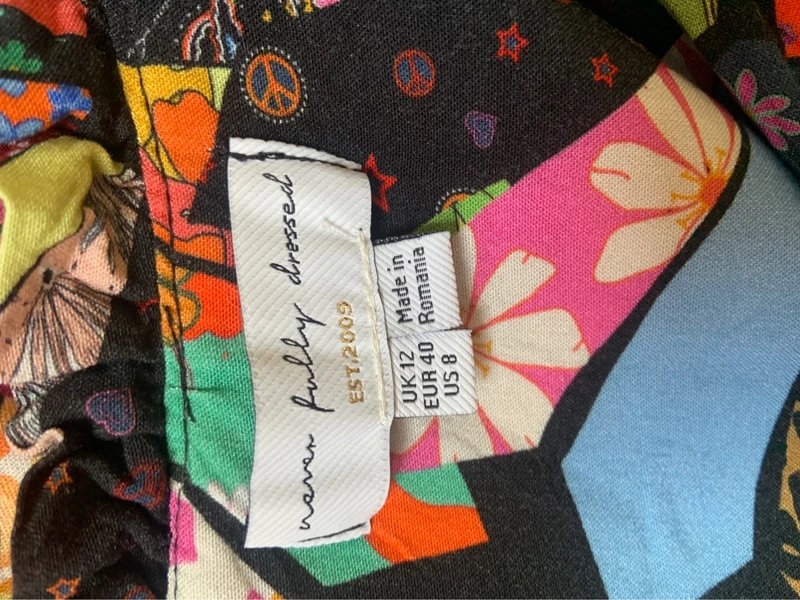 Stunning Never Fully Dressed Jolene shirt in their iconic vibrant patchwork print. This is a real statement piece that’s perfect for dressing up with trousers or keeping casual with jeans. Perfect for creating a bold and unique look.