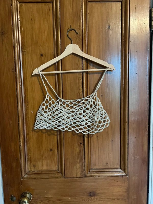 The Never Fully Dressed Pearl Bralet in Beige is available in sizes XXXL, XXL, XL, XS, L, M, S.
