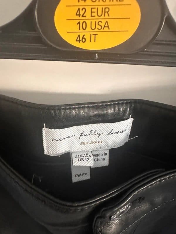 Stylish wide-leg trousers in black pleather from Never Fully Dressed. Designed for petite sizes, these trousers offer a sleek and modern look. Perfect for both casual and formal occasions.