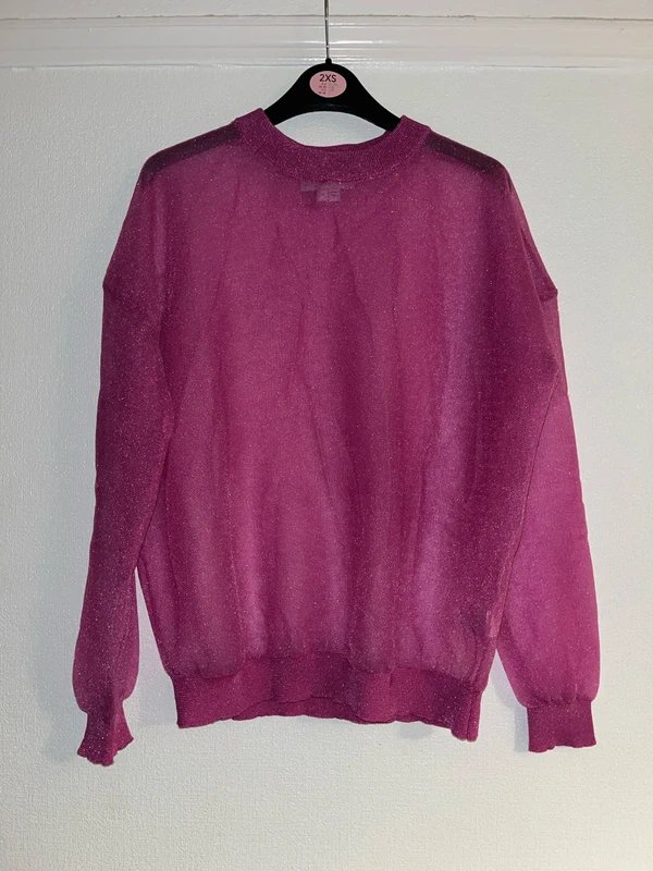 Elegant pink sheer glitter jumper with a delicate sheen, perfect for adding a touch of sparkle to your wardrobe.
