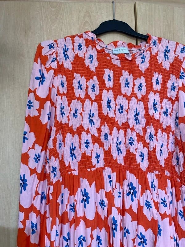 The Never Fully Dressed Red Pink Floral Midi Dress is made from viscose.