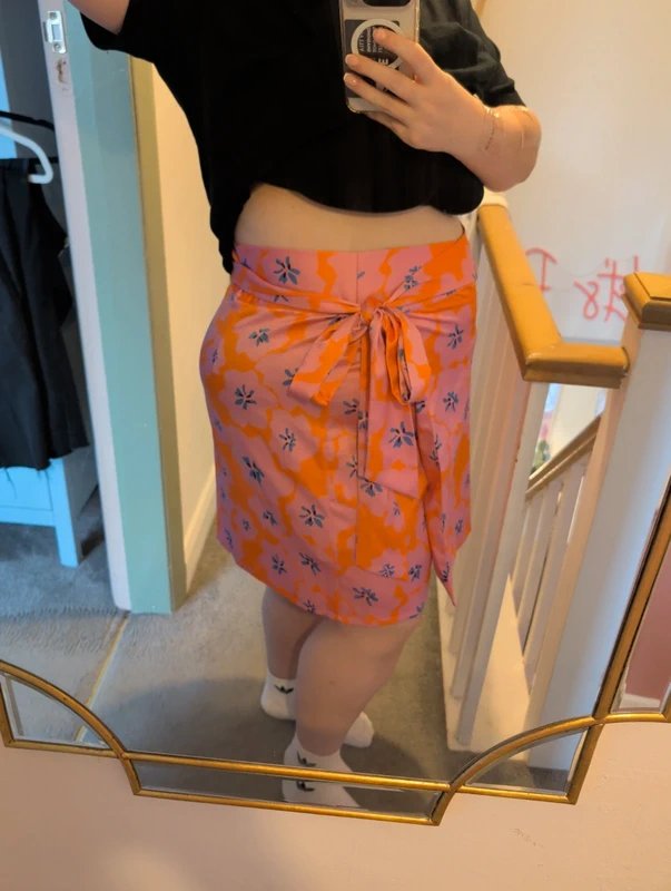 This vibrant orange and pink floral wrap skirt from Never Fully Dressed is a playful addition to any wardrobe. Designed with a wrap-around style, it features a playful floral print and is crafted from lightweight satin fabric. The skirt is perfect for casual outings, beach days, or adding a pop of color to your everyday look.