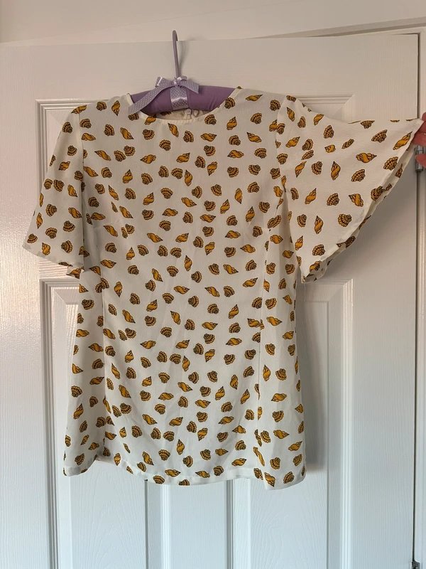 This shell print top from Never Fully Dressed is a delightful piece with fitted and flared flowy short sleeves. Made from chiffon material, it is perfect for a casual and breezy look.
