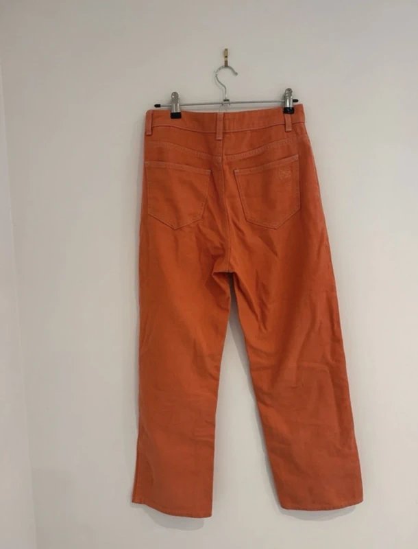 The Never Fully Dressed Bright Orange Straight Leg Denim Jeans is available in sizes S.