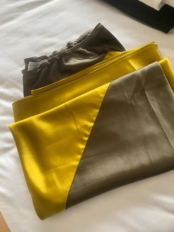 “Pair with a gold camisole and gold strappy heels for an elegant evening look, or wear with a khaki turtleneck and brown ankle boots for a chic daytime outfit.”