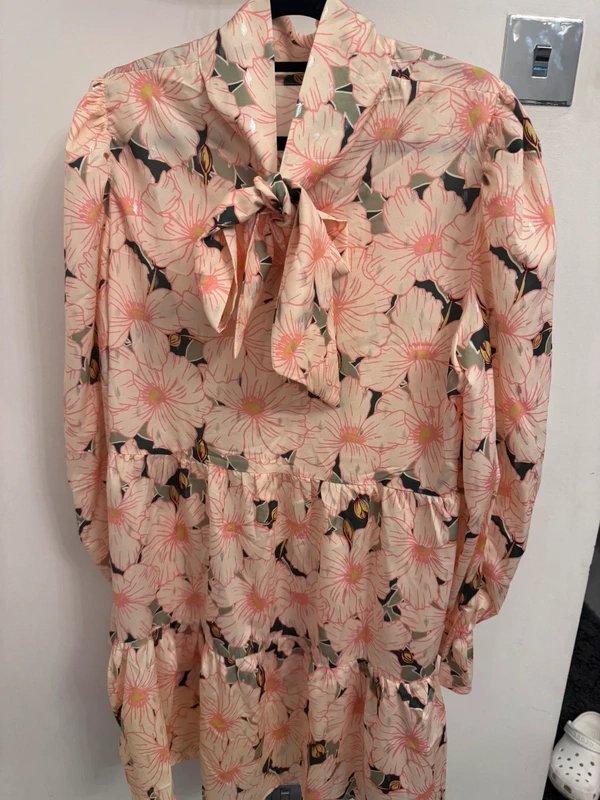 This Peach floral summer dress features a stunning floral print. The lightweight fabric and round neckline make it perfect for warm weather. Ideal for casual outings and beach days.