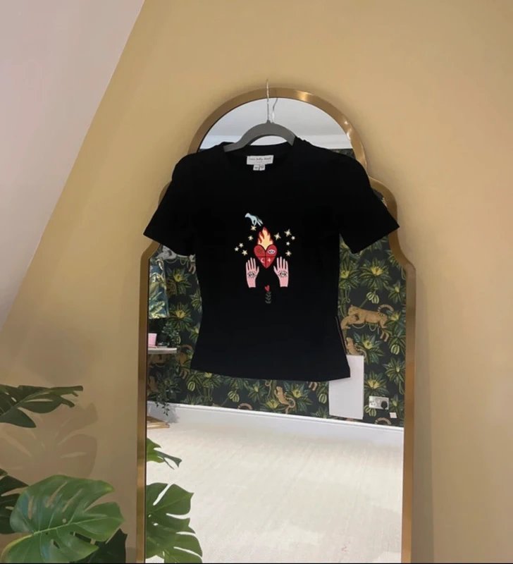 The Never Fully Dressed Embroidered T-shirt in Black is available in sizes S.