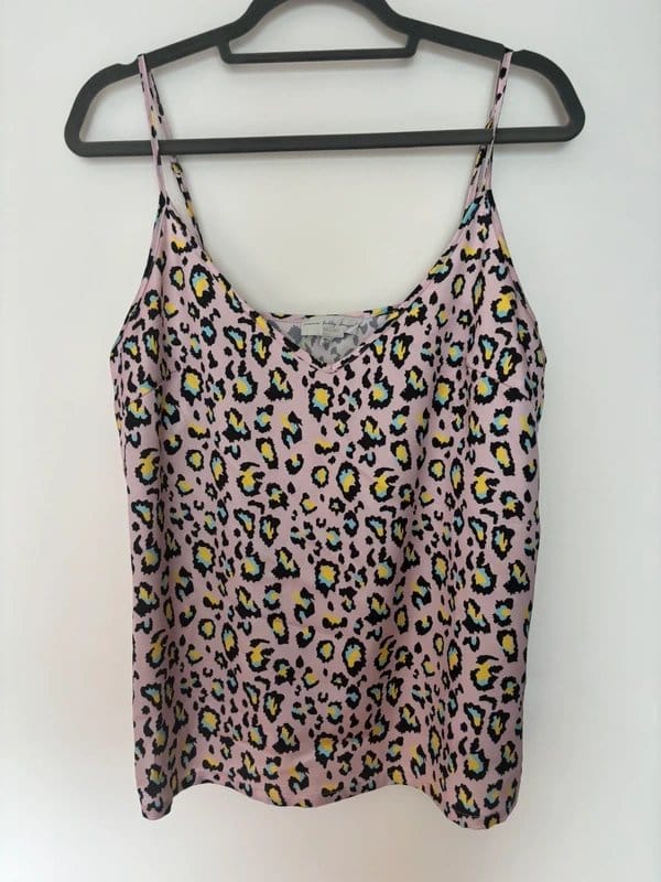 Playful pink leopard print vest with a strapless design and lightweight fabric. Perfect for casual outings or adding a bold statement to your wardrobe.