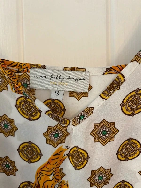 This print cami top by Never Fully Dressed is an eye-catching piece, perfect for adding a pop of color to your wardrobe. The lightweight fabric and relaxed fit make it ideal for casual outings.