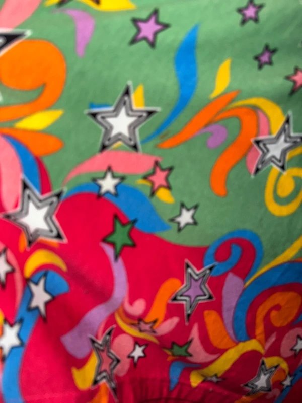 Vibrant Mint Star Cami by Never Fully Dressed. This fun and playful top features a multi-colored star print on a soft, stretchy fabric. Perfect for casual wear or as a statement piece. Ideal for adding a pop of color to your wardrobe.