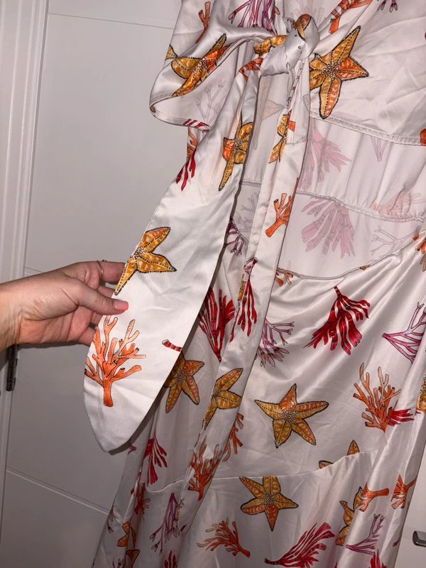 Lovely Never Fully Dressed White Starfish Shell Print Midaxi Dress Size 18. Great for summer, this dress features a fun, funky print.